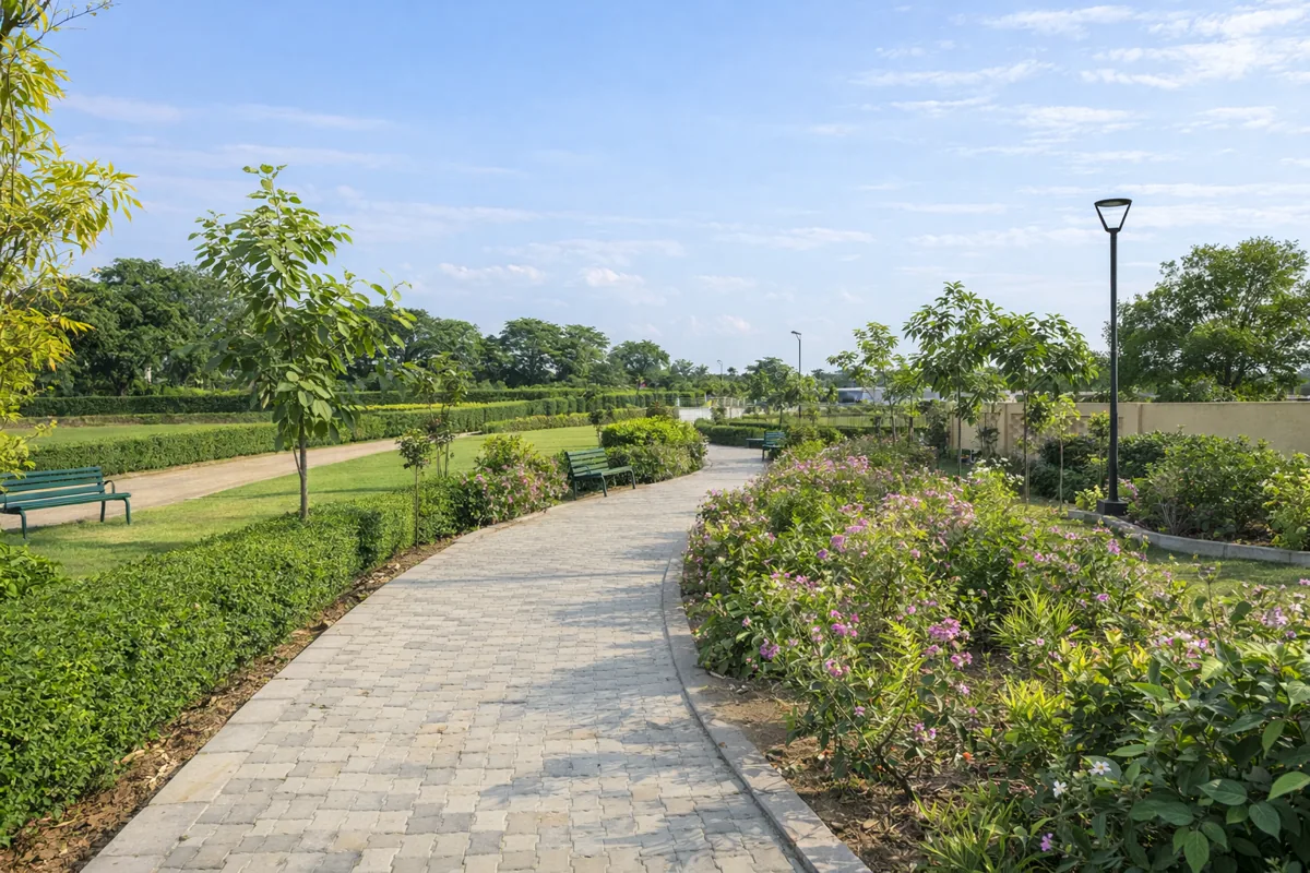 The other great positive of R2R Plots Sector 20 Jhajjar is that it has a very powerful infrastructural planning. The site is on a road of 75 meters showing a superb accessibility and visibility. Being stilt plus four floors approval according to the DDJAY norms, the buyers are free to construct the independent floors or to create sources of rental income. This is what renders R2R Sector 20 plots very attractive to the end-users and to the investors, who want to maximize their returns on residential plots within Jhajjar. The fact that the gated community has 24/7 surveillance further increases the level of safety and exclusivity of the development.